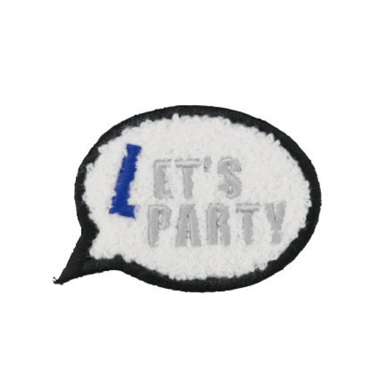 LET'S PARTYの吹き出しデザインのもこもこパイル地ワッペン。
