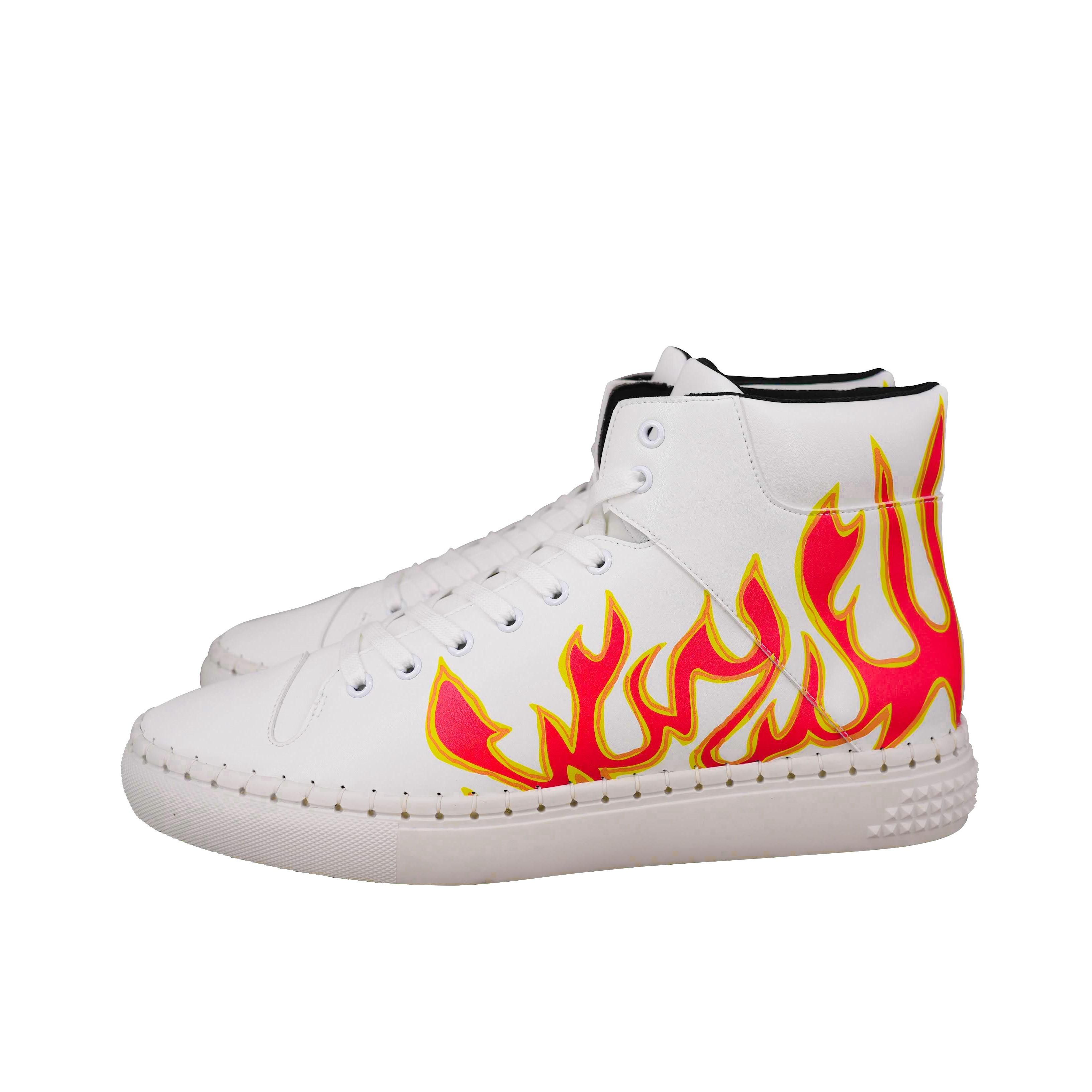 近藤岳登といえば情熱。そんな岳登氏が大好きなファイヤーパターンをスニーカーに大胆にプリントしたデザイン「情熱」。