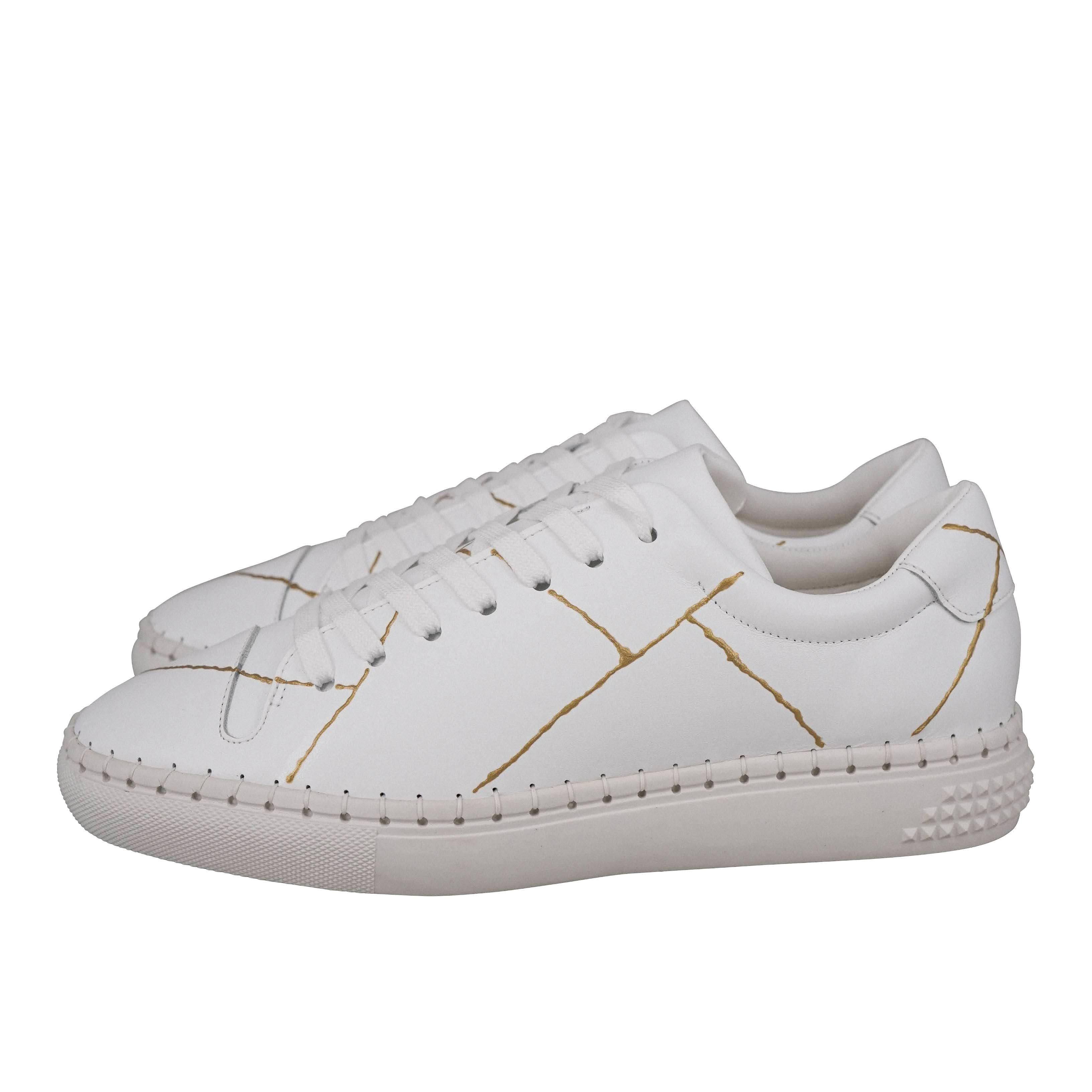 継がれる金は一点一点異なり、まさに世界に一足のスニーカーに仕上げます。
