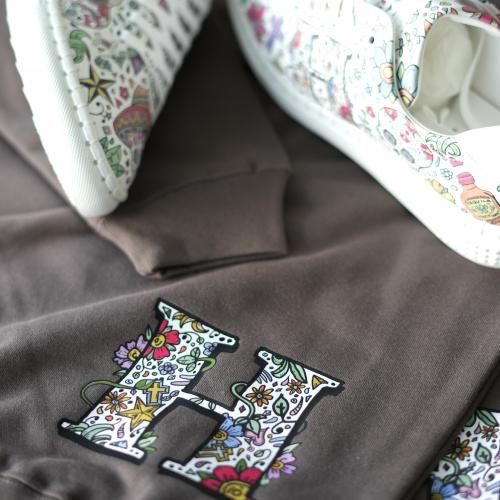 フロントの左下にはさり気なくカラフルなHのプリントが施され