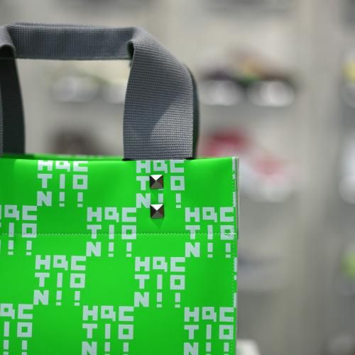 オリジナルグラフィック「Pixel」は、スクエア形状に配したHaCTION!のピクセル文字が格子柄のように配列されたデザイン。