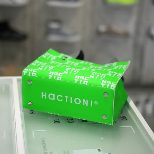 アクセントのスタッズやブランドロゴのシリコンプレートなどもスニーカーで使われているパーツなので、HaCTION!のスニーカーとのリンクコーデも楽しめます。
